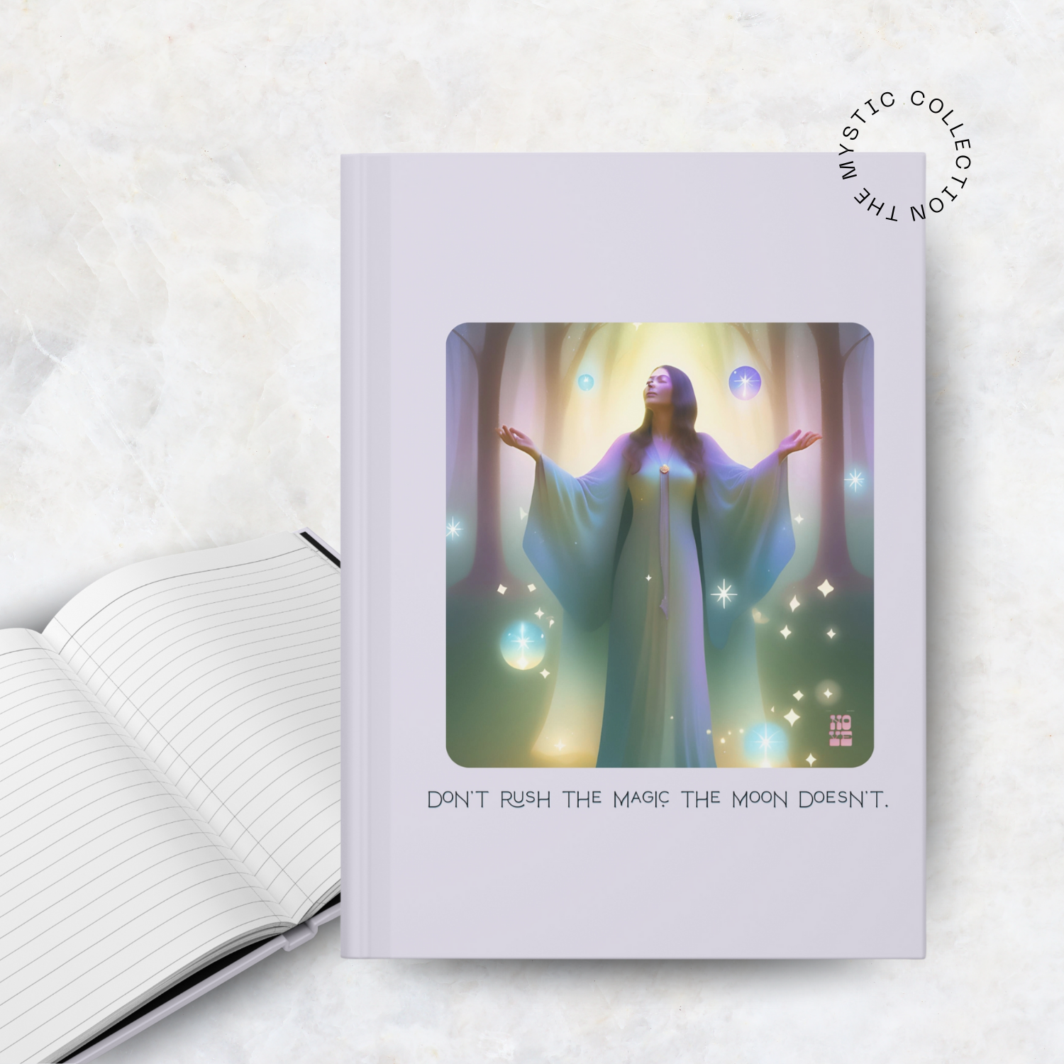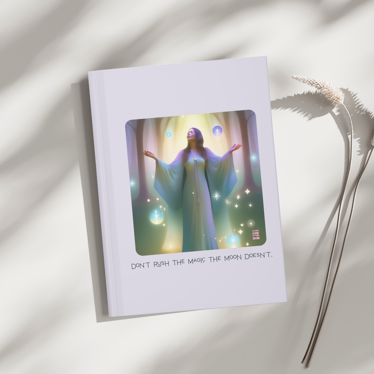 Don't rush the magic. The moon doesn't. ✧ Capture your thoughts, dreams, and intentions in this beautifully designed hardcover journal ~ a perfect companion for moments of reflection, creativity, and self-discovery. Featuring a matte laminated cover with a soft, smooth finish, this journal blends elegance with durability, making it as timeless as the thoughts you’ll keep inside. Whether you’re journaling manifestations, sketching inspiration, or documenting daily reflections, this piece is designed to inspire stillness and spark creativity. Its vibrant cover art reflects the dreamy, ethereal aesthetic of NOVE, creating a beautiful space for your ideas to live and grow.